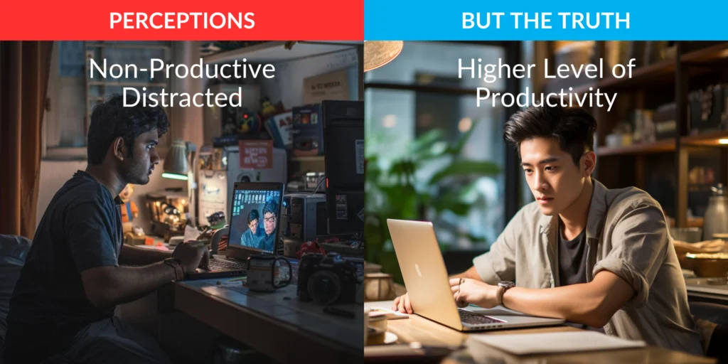 Overall, while perceptions about remote work may persist, the realities often present a more positive outlook, emphasizing its effectiveness, productivity, and inclusivity in modern work environments.